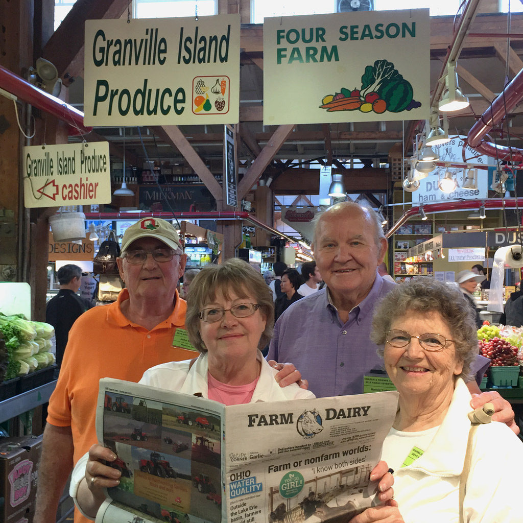 John and Midge Brainerd (left), of Navarre, Ohio, and Harold and Eleanore Yoder, of Louisville, Ohio, check out the fresh produce, meat and seafood at the Granville Produce Market in Vancouver, British Columbia, Canada. The couples were returning from a cruise of the Hawaiian islands where they toured the historical sites and the coffee, pineapple and macadamia nut plantations. Farm and Dairy traveled along!