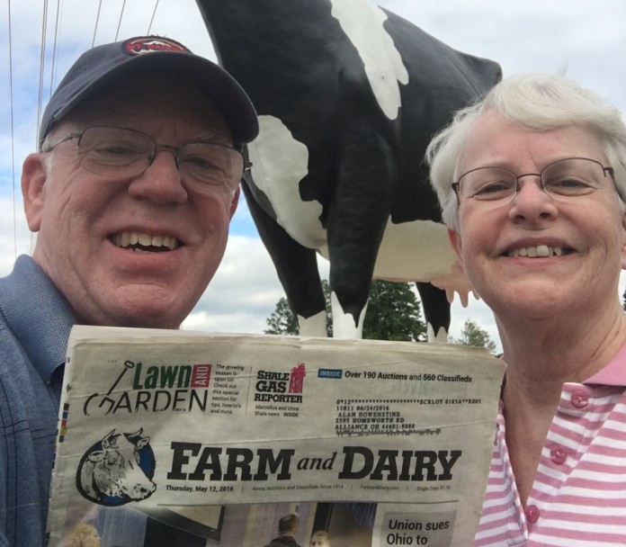 Nancy and Alan Howenstine of Alliance, Ohio, traveled to several western states this summer with Farm and Dairy. They discovered a Holstein cow to take a selfie with in the down of DeForest, Wisconsin.