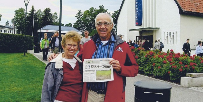Lou and JaNelle McDorman, of Clark County, Ohio, visited Ireland and Norway this summer. They are pictured standing in front of the Viking Museum in Olso, Norway, reading Farm and Dairy.