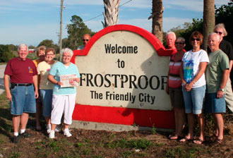 We like warm places in cold weather. And with a name like Frostproof, Fla., it’s gotta be warm! Frank and Gwen Francis and Bill and Eileen McPherson are the snowbirds who winter in Frostproof, which means lots of northern friends come to visit (and restock their stash of Farm and Dairy reading!). From left are: Bill McPherson, Mary Witherow, Gwen Francis, Eileen McPherson, Frank Francis, Roger Minor, Marjorie Minor, Carol Minor, Tom Minor, and Tom Fergason.