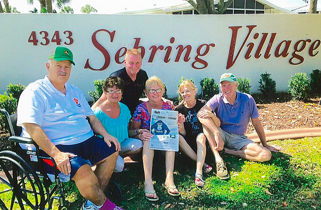 Brian and Sibby Neff, Jim and Judy Haney visited Bob and Terri Roesch at their winter home in Sebring, Florida. All enjoyed the nice weather while taking along their Farm and Dairy.