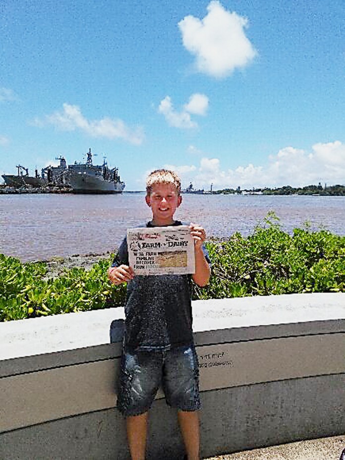 Colby Turon, 12, of West Farmington, Ohio, took a break from his Ohio Brown Swiss prince duties and visited Pearl Harbor in July. Looks like a great place to visit, Colby!