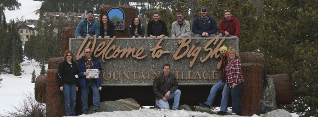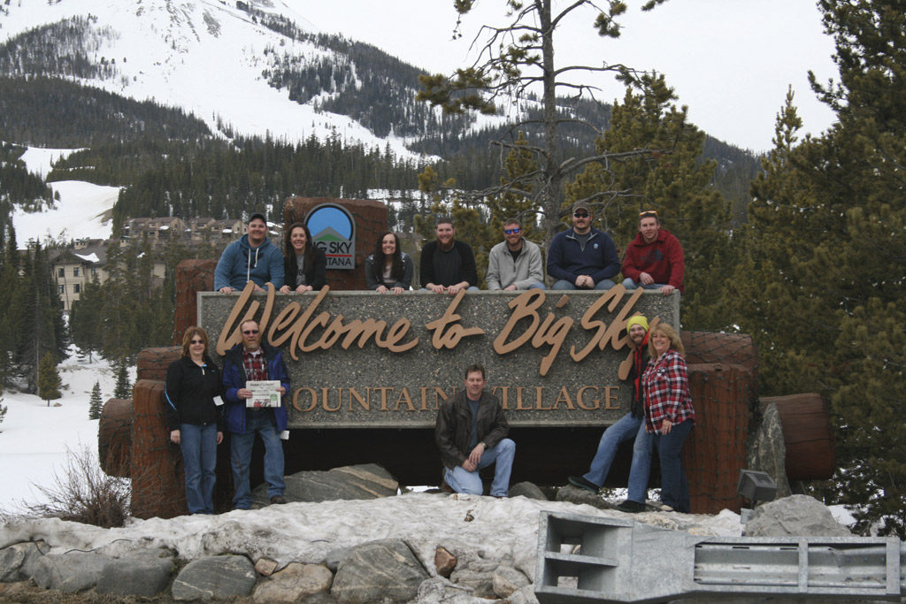 Todd and Susan Zimmerman brought Farm and Dairy on vacation to Big Sky, Montana, in March Ten others vacationed with the Zimmermans. They were (top left): Cody Zimmerman, Emily Pollock, Kaitlyn McCartney, Bob Hickle, John Gates, Kyle Zimmerman and Matthew Keller; (bottom left): Dennis and Cathy Hickle, Todd Zimmerman, Matthew Lawrence and Susan Zimmerman. Cody and Emily and Bob and Kaitlyn got engaged on top of Lone Peak in Big Sky.