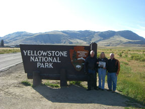 Dave and Deb McKinney of Paris, Ohio, and Dennis Biery of Louisville, Ohio, took a break from their motorcycle trip through Yellowstone National Park to read Farm and Dairy.