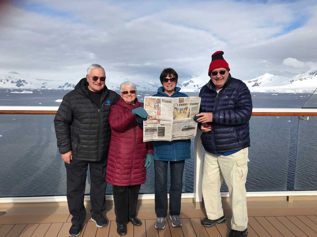 Dr. Bruce and Ruth Marhefka (left), of Kensington, and Judy and Dr. Keith Burgett, of Carrollton, shared their Farm and Dairy aboard a Celebrity Cruise ship to Antarctica. We loved seeing those mountains and glaciers (but the stop to mingle with the penguins was pretty cool, too!)