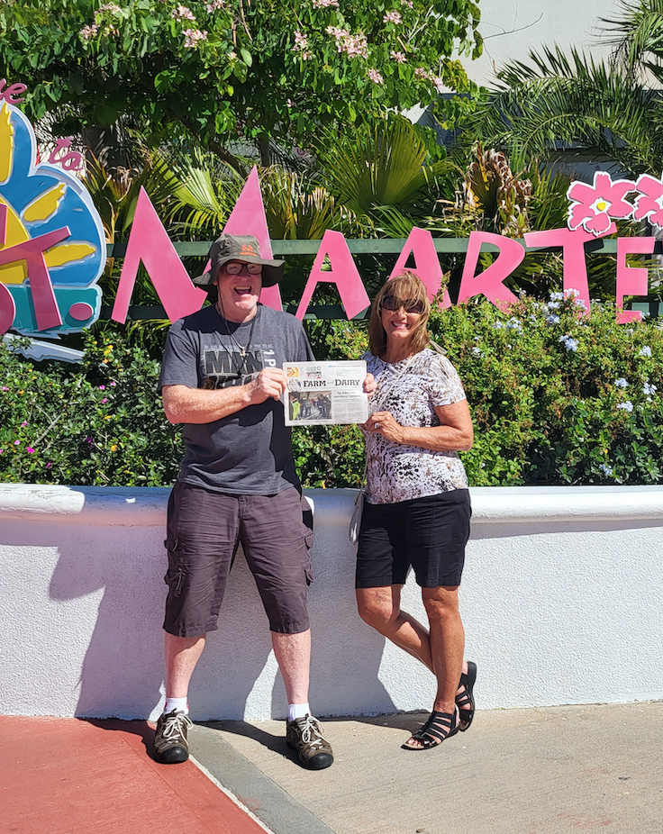 John and Sharon Gustina brought Farm and Dairy along on vacation to St. Maarten. (Submitted photo)