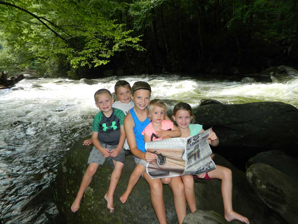 We took a break at the Chimney Tops Picnic Area in the Great Smoky Mountains National Park, just south of Gatlinburg, Tennessee, with Molly, Bethany, Kya, Troy and Carissa Gasser, children of Kurt and Kelly Gasser, of Creston, Ohio. The site along the Little Pigeon River was the perfect spot for a hot August day!