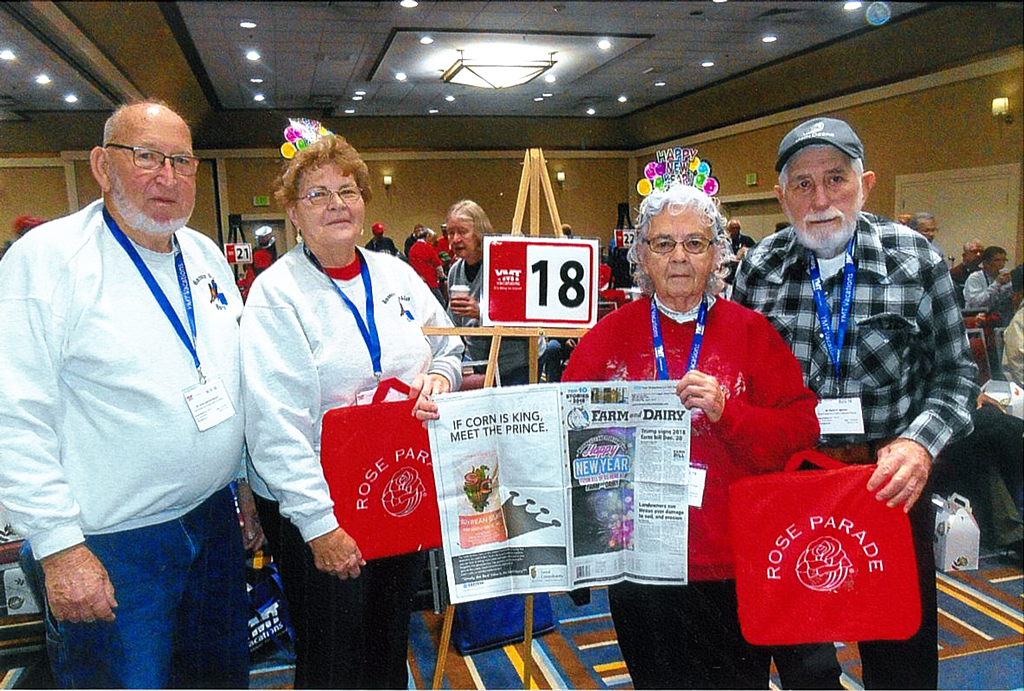 David and Beverly Hanson, of Cherry Valley, Ohio, and Melvin Marrison and Evelyn Zaebst, of New Lyme, Ohio, took Farm and Dairy to Pasadena, California, to see the Rose Parade Jan. 1.